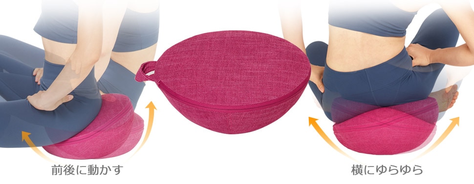 ドームの平らな面に座ることで更に体幹が使われます。ゆらゆら揺れやすいので、楽しく自然に前後左右、腰を回転するエクササイズによって座った時間がジム時間。運動の苦手な方でも長続きします。